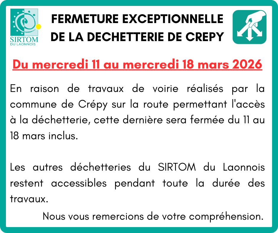 Du 11 au 18 mars – fermeture exceptionnelle de la déchetterie de Crépy